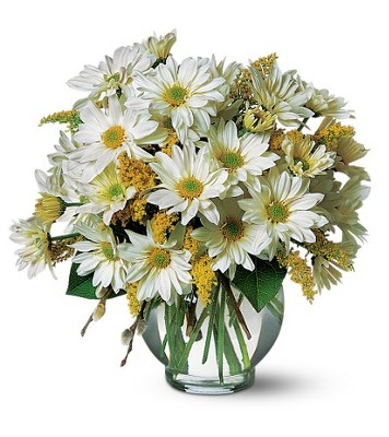 Delightful daisies. Approx. 10" in diameter. Container may vary.